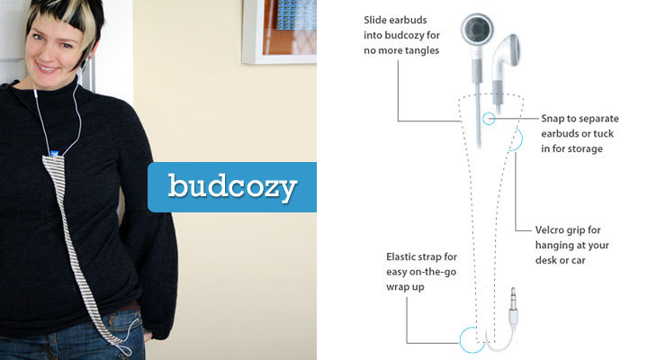 My work-around until today has been a wooden paint-stirrer (I wrap the earbuds around the stick), which is OK, but it takes up room, and is impractical if I don't have my backpack with me. I decided there must be some piece of equipment for this. Here's what I found: