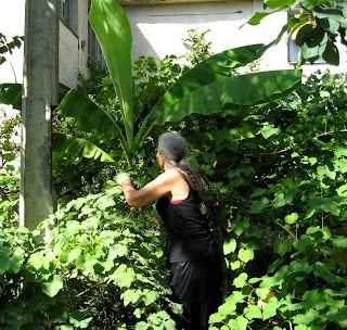 She has gardens 1, 2, and 3. She and her husband began creating them 15 years ago. They are in places by "my" building that would likely otherwise be naked, baked soil. An empty lot.