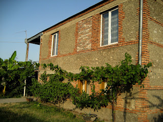 At any rate, presently we arrived in Gurjaani and soon enough I saw Nino and several young'ns anxiously looking out for my arrival. Nino felt very relieved when I came. We walked down a gravel-y road between strong, two-story, stone-and-brick houses, all in the same style.