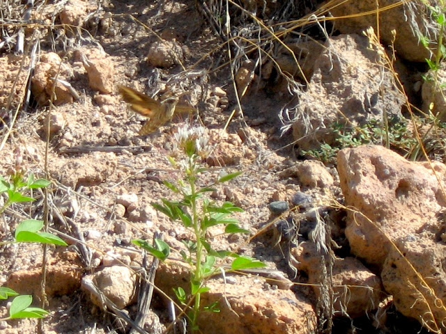 As I walked on the path to the Pueblo ruins where the petroglyphs are, movement on the side of the path drew my eye. Looked like hummingbirds at first, but too small. There were the prettiest pink bands on their bodies. Hummingbird moths.
