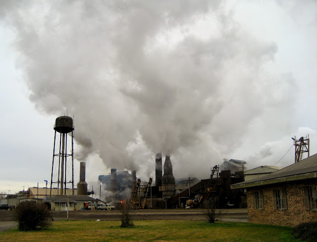 Right on the edge of town, in the short-short video below, you can see: unharvested sugarcane, sugarcane being harvested, empty going out for more sugarcane, and the plant processing the cane. Not to mention the killer song by Blind Boys of Alabama. (I heard them play this very song at Columbia's first Roots 'n Blues Festival.)