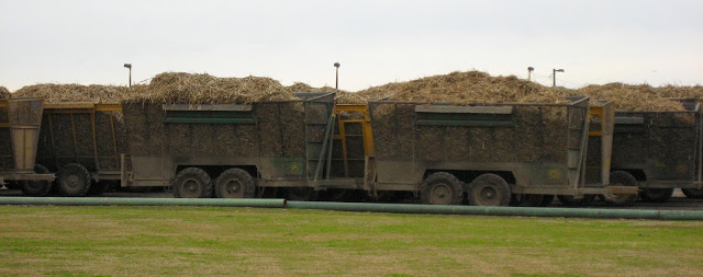 I'm kind of fascinated by the sugarcane harvesting. No idea why. But I like the shape of the trucks. The harvesting machines are like dinosaur robots. And the sugarcane is so green.
