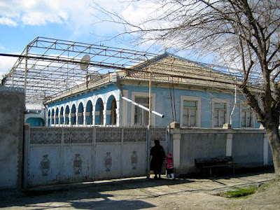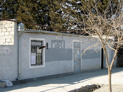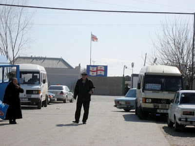 But our minds were on the border. When the marshrutka stopped, the first thing we did when we debarked was head to Azerbaijan. To get to Azerbaijan from Georgia, you have to get a letter of invitation from someone in Azerbaijan, submit your passports to some authority in advance, and pay some bucks. We didn't have any of those things. Except our passports. We'd brought them with us, just in case. Just in case what, we didn't know. But just in case.