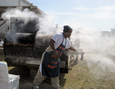 This man was cooking up some pork steaks early on, preparing for sale a little later.